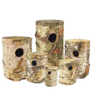 Ce nichoir en bouleau est spécialement conçu pour les inséparables afin de fournir un environnement sûr et confortable pour la reproduction et l'élevage des jeunes oiseaux. Le nichoir mesure 31x21 cm et est fabriqué en bois de bouleau durable. Diamètre de 6cm.